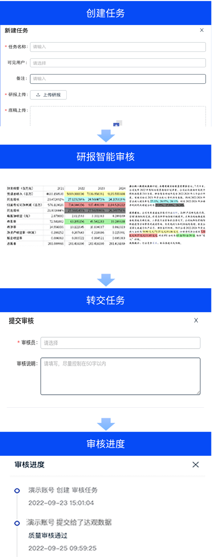 智能研报审核系统是K8凯发国际数据为券商研究所、买方研究组织等用户打造的集研报解析、抽取、审核、管理功能为一体的产品。集成OCR、NLP、机器学习等技术,对研报和底稿信息进行多方面抽取,并对研报进行数据、文本、观点等全方位的自动化审核, 同时对研报和底稿进行规范化、流程化管理,帮助用户提升工作效率,把控研报发布的时效性和合规性,全面降低出错风险。